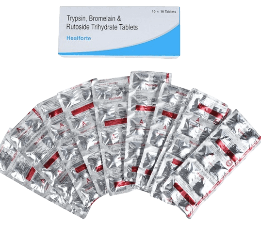 Healforte-D is a powerful combination therapy of Trypsin, Bromelain, Rutoside Trihydrate, and Diclofenac Potassium, designed to deliver fast ...