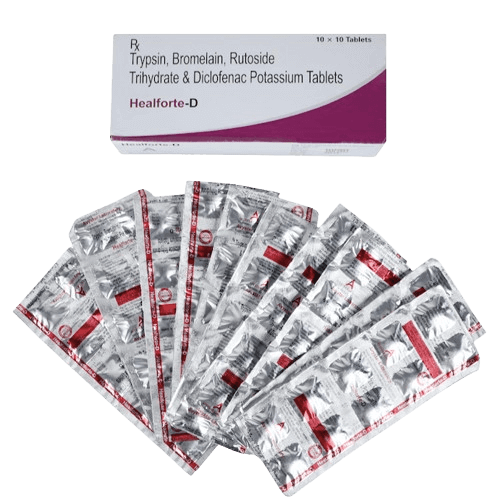 Healforte-D is a powerful combination therapy of Trypsin, Bromelain, Rutoside Trihydrate, and Diclofenac Potassium, designed to deliver fast ...